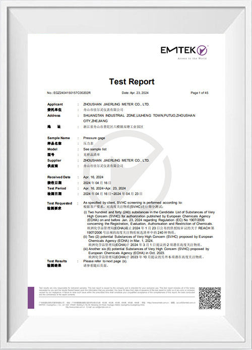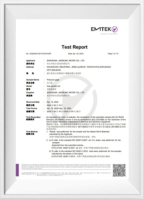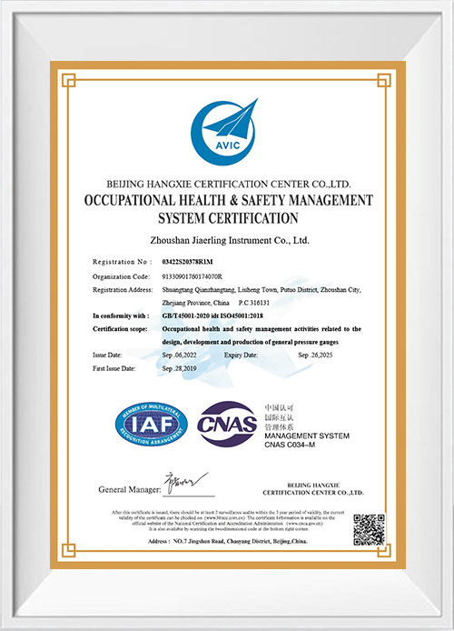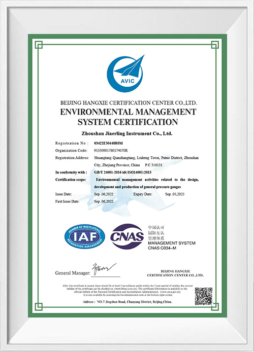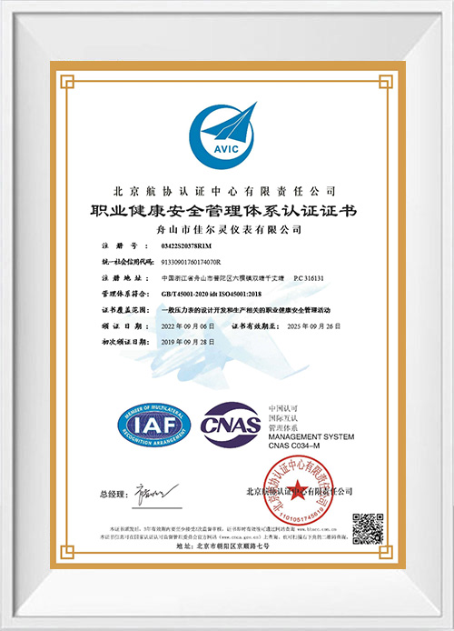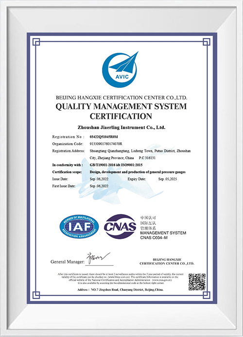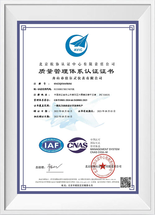 Certificaat- Zhoushan Jiaerling Meter Co., Ltd.