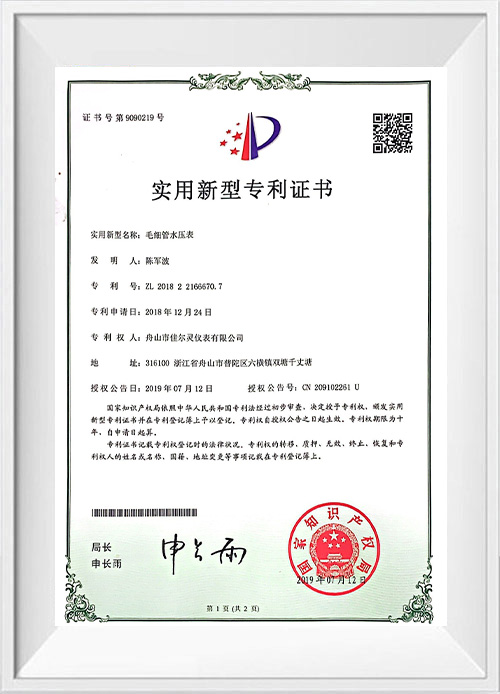 Certificaat- Zhoushan Jiaerling Meter Co., Ltd.
